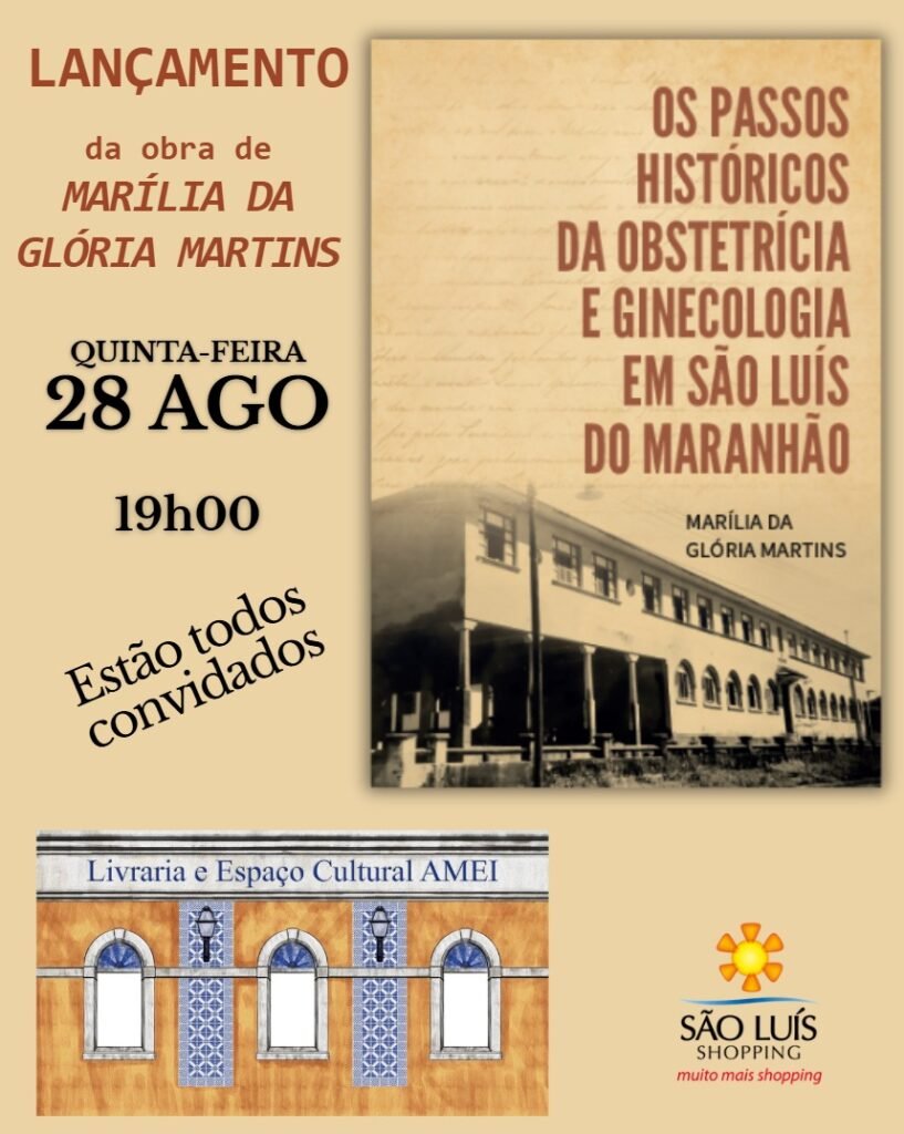 A pesquisadora e professora universitária, Marília da Glória Martins, lançará sua nova obra “Os passos históricos da obstetrícia e ginecologia em São Luís do Maranhão”, no dia 28 de agosto, a partir das 19h, na Livraria e Espaço Cultural Amei (Shopping São Luís), na capital maranhense.