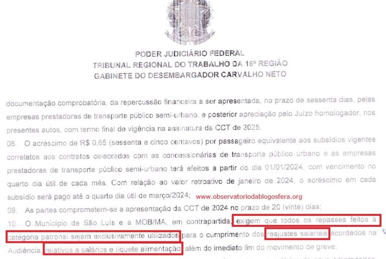 Em nota, o SET afirmou estar “aberto ao diálogo” e disposto a cumprir integralmente as determinações judiciais. Contudo, o sindicato patronal atribui a piora da crise no transporte coletivo à Prefeitura de São Luís, que — segundo a entidade — deixou de repassar os subsídios previstos em acordo homologado pelo próprio TRT.