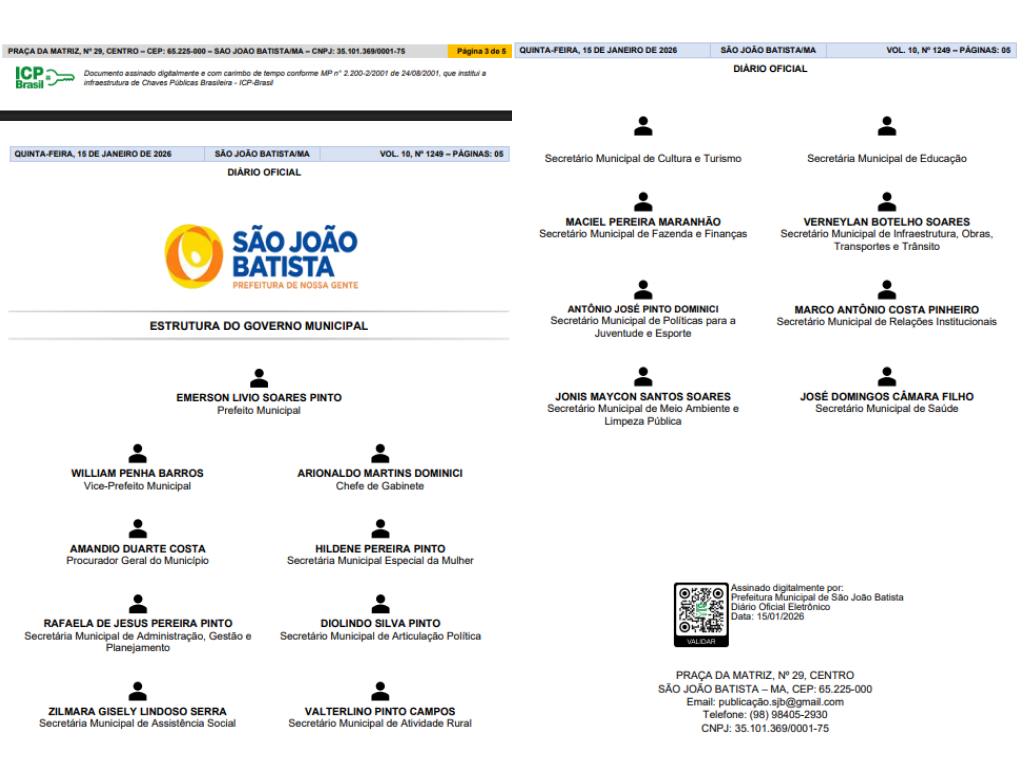 - Jonis Maycon Santos Soares – primo do prefeito, apontado como responsável pela Secretaria de Relações Institucionais.
