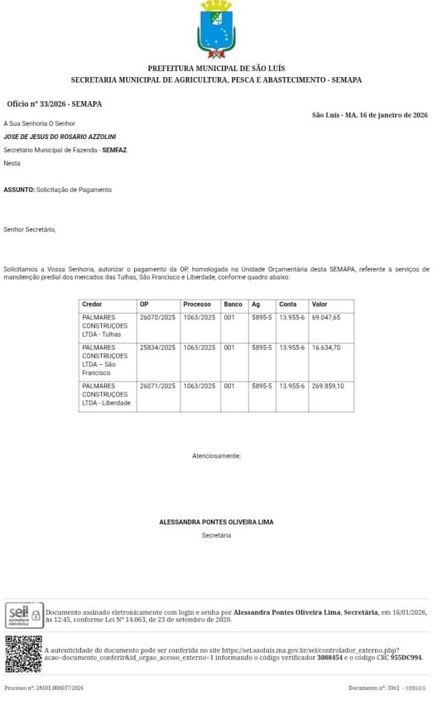 O episódio escancarou, mais uma vez, os problemas estruturais do Mercado da Cohab, que se agravam a cada temporada de chuvas. A situação levanta questionamentos sobre a manutenção dos equipamentos públicos, especialmente diante da existência de ordens de pagamento aprovadas pela Secretaria Municipal de Agricultura, Pesca e Abastecimento (SEMAPA) para serviços de manutenção em mercados como Tulhas, São Francisco e Liberdade — pagamentos que, segundo documentos oficiais, ainda aguardam autorização da Secretaria Municipal de Fazenda (SEMFAZ).
