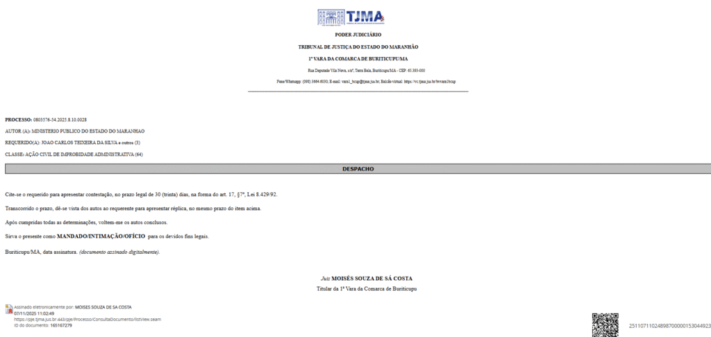 A urgência na realização do concurso também se fundamenta em denúncias de desvio de finalidade. Segundo o promotor de justiça Felipe Augusto Rotondo, investigações da Ouvidoria do MPMA apontaram que aprovados em processos seletivos de 2024 estavam sendo nomeados para cargos em comissão, o que caracteriza preterição arbitrária e irregularidade administrativa.
